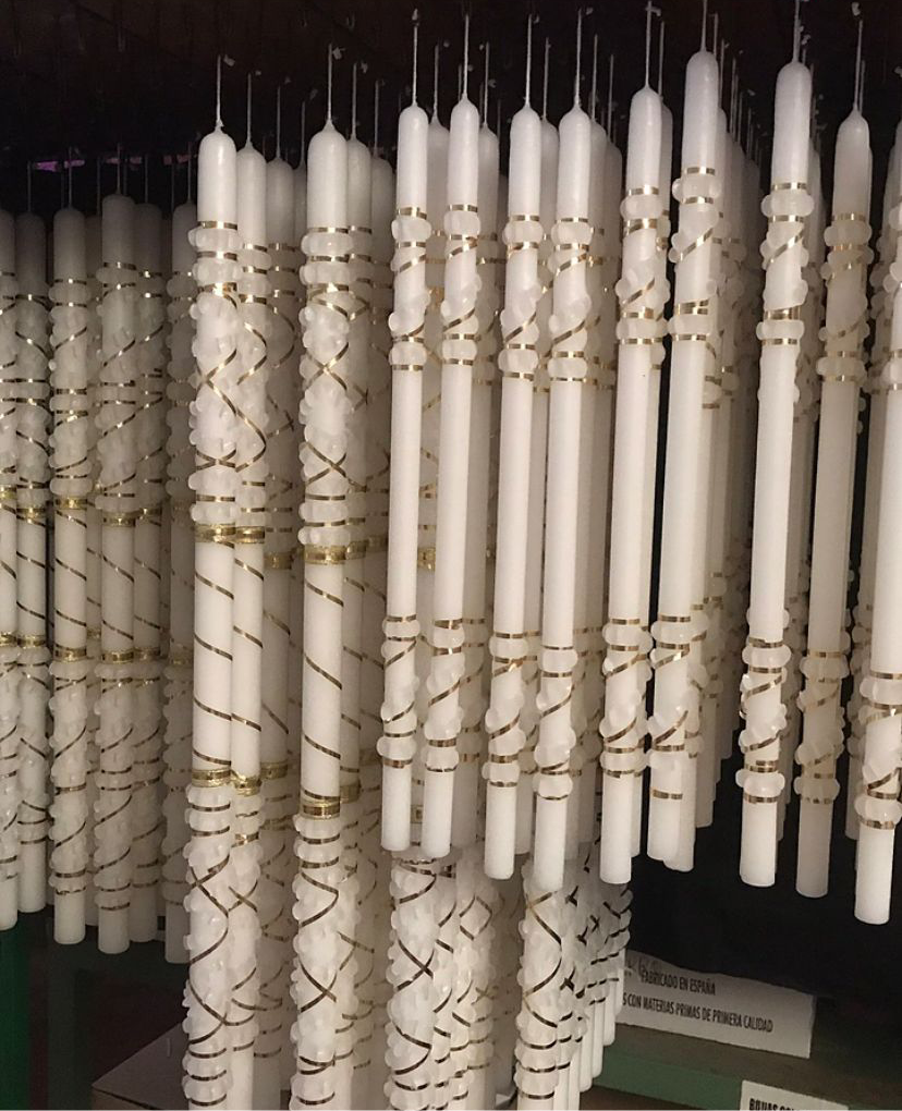 Velas elaboradas artesanalmente en noque mediante inmersión, consiguiendo la mayor calidad para una vela, además están rizadas a mano.